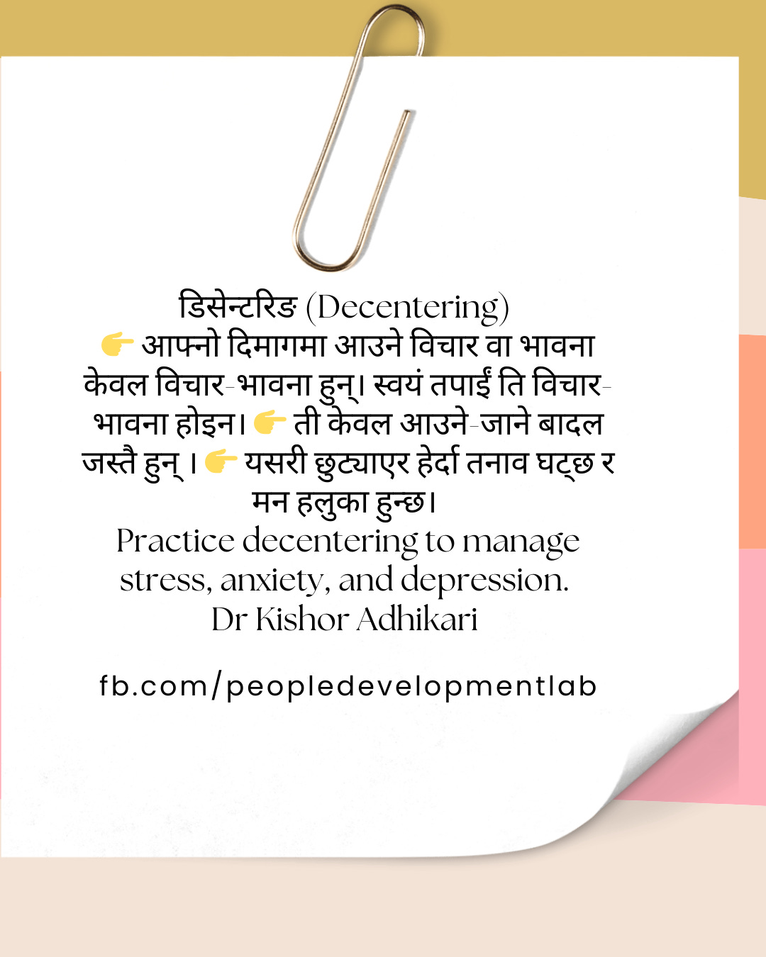 👉 आफ्नो दिमागमा आउने विचार वा भावना केवल विचार-भावना हुन्। स्वयं तपाईं ति विचार-भावना होइन।